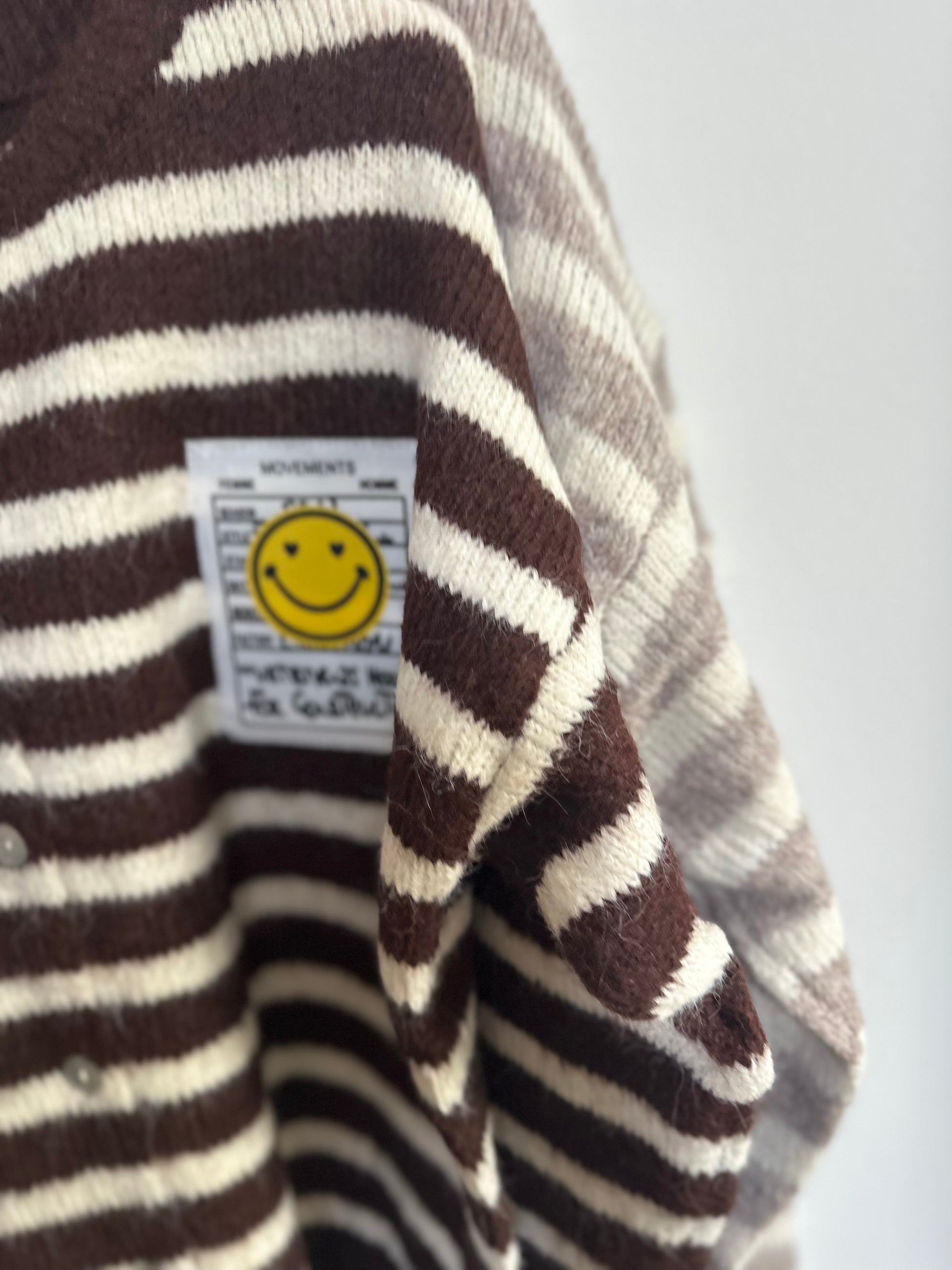 Kuschelig, stylisch und absolut vielseitig – dieser Herbstcardigan ist das perfekte Must-have für die kühlere Zeit. Der weiche Bouclé-Strick sorgt für ein angenehmes Tragegefühl, während der coole Smiley-Patch auf der linken Brust ein trendiges Detail setzt.