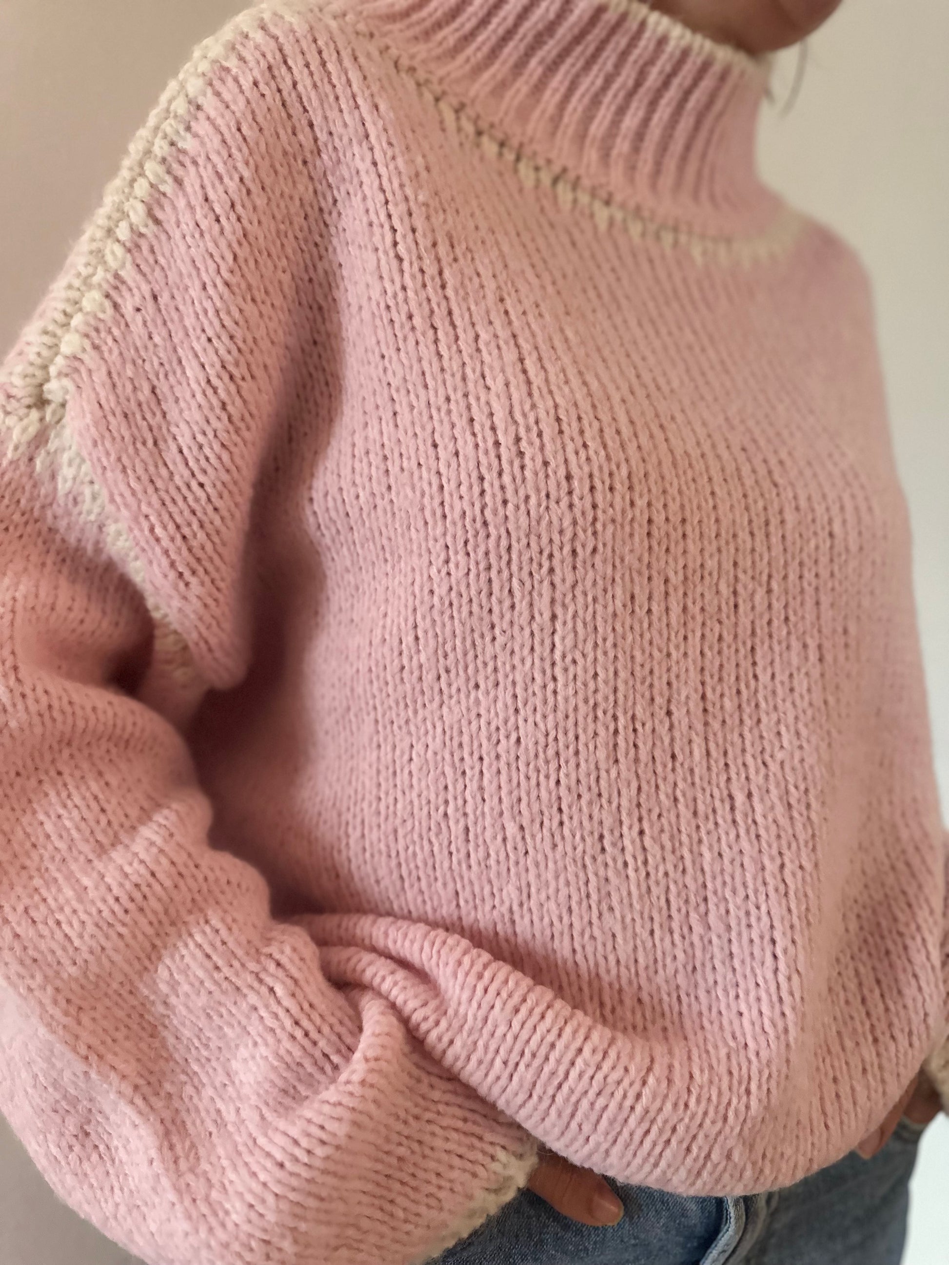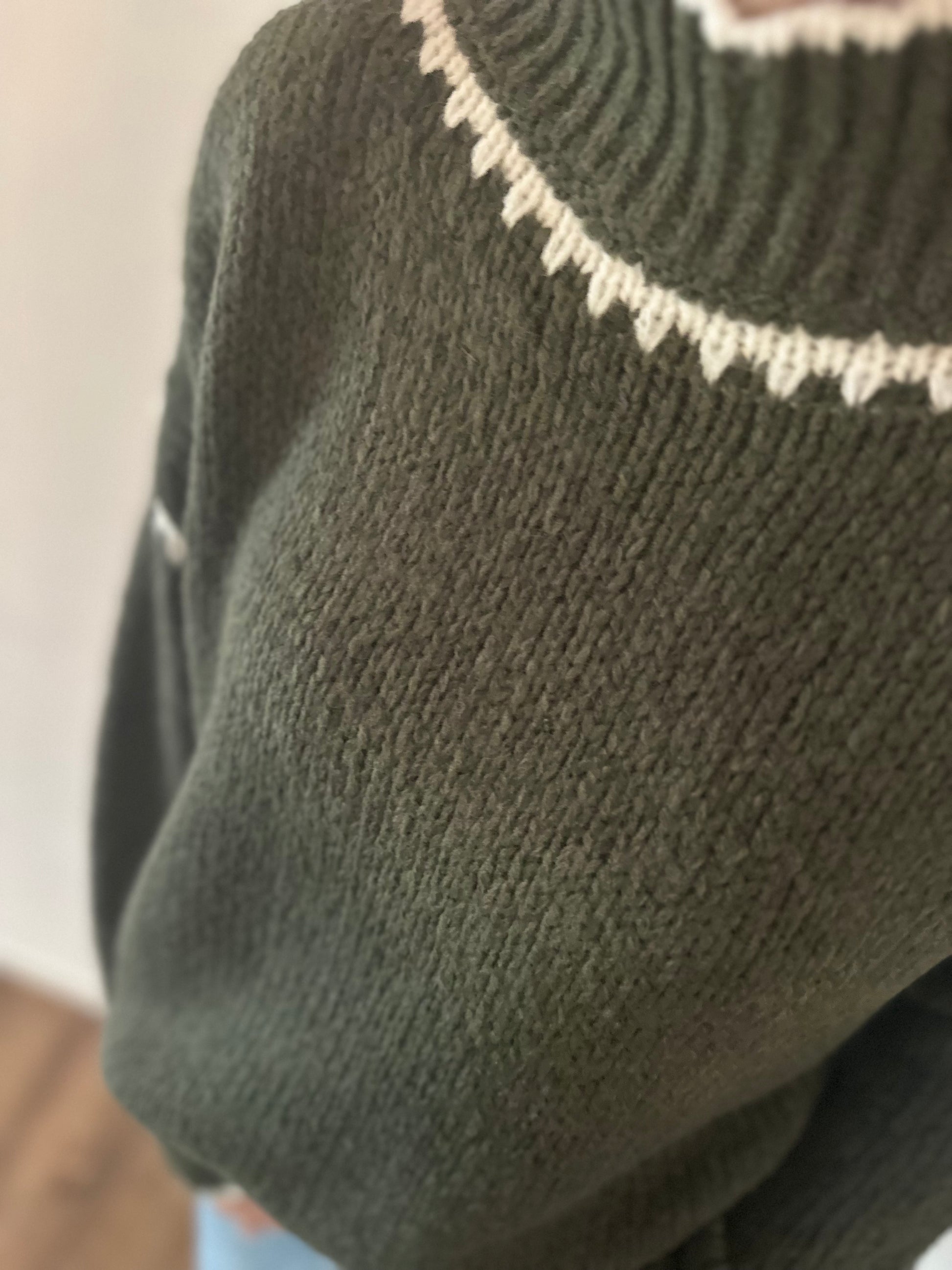 Besonders detailverliebt: Die feine beige abgesetzte Naht, die dem Pullover einen edlen Akzent verleiht. Ob in zartem Rosa oder in tiefem Dunkelgrün – beide Farben lassen sich vielseitig kombinieren und bringen Eleganz in deine Wintergarderobe.