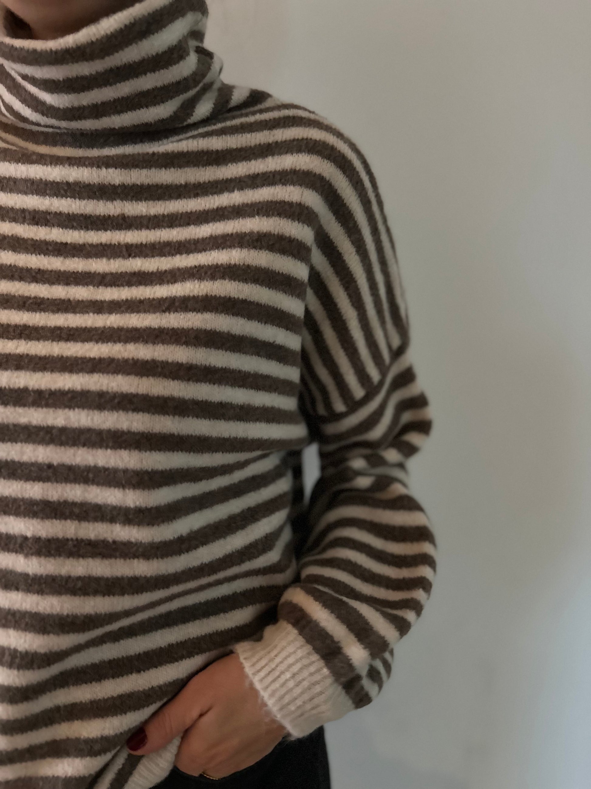 Der Rollkragenpullover Happy Stripes bringt sofort gute Laune in deinen Look! Der weiche Strickpullover in modernen Streifenmuster. Mit seinem entspannten Schnitt und dem lässigen Rollkragen ist er perfekt für kühle Tage – super bequem, super stylisch und ein echter Hingucker zu Jeans oder Röcken. Dein neues Lieblingsstück!