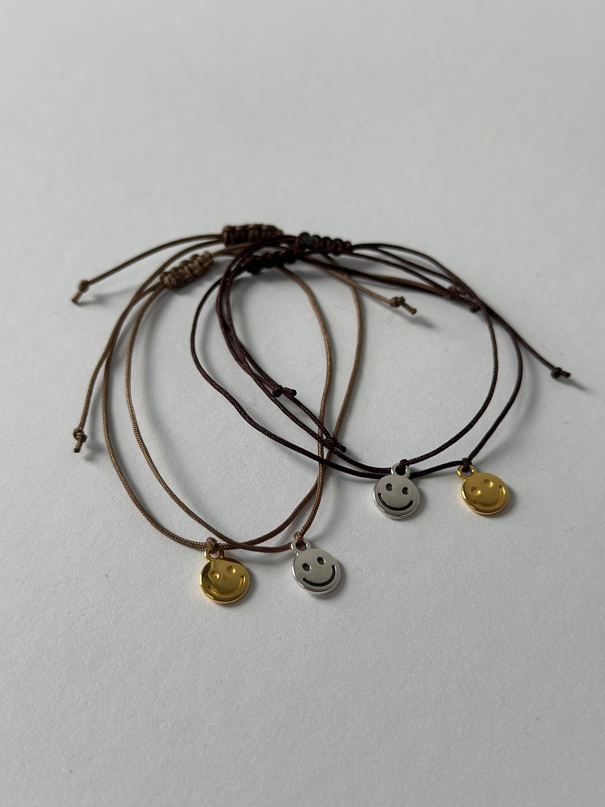 Trendiges Armband in den Herbstfarben Hellbraun oder Dunkelbraun, mit wahlweise silbernem oder goldenem Smiley-Anhänger. Minimalistisch, verstellbar und perfekt zum Kombinieren – ein Must-have Accessoire für den Herbst.