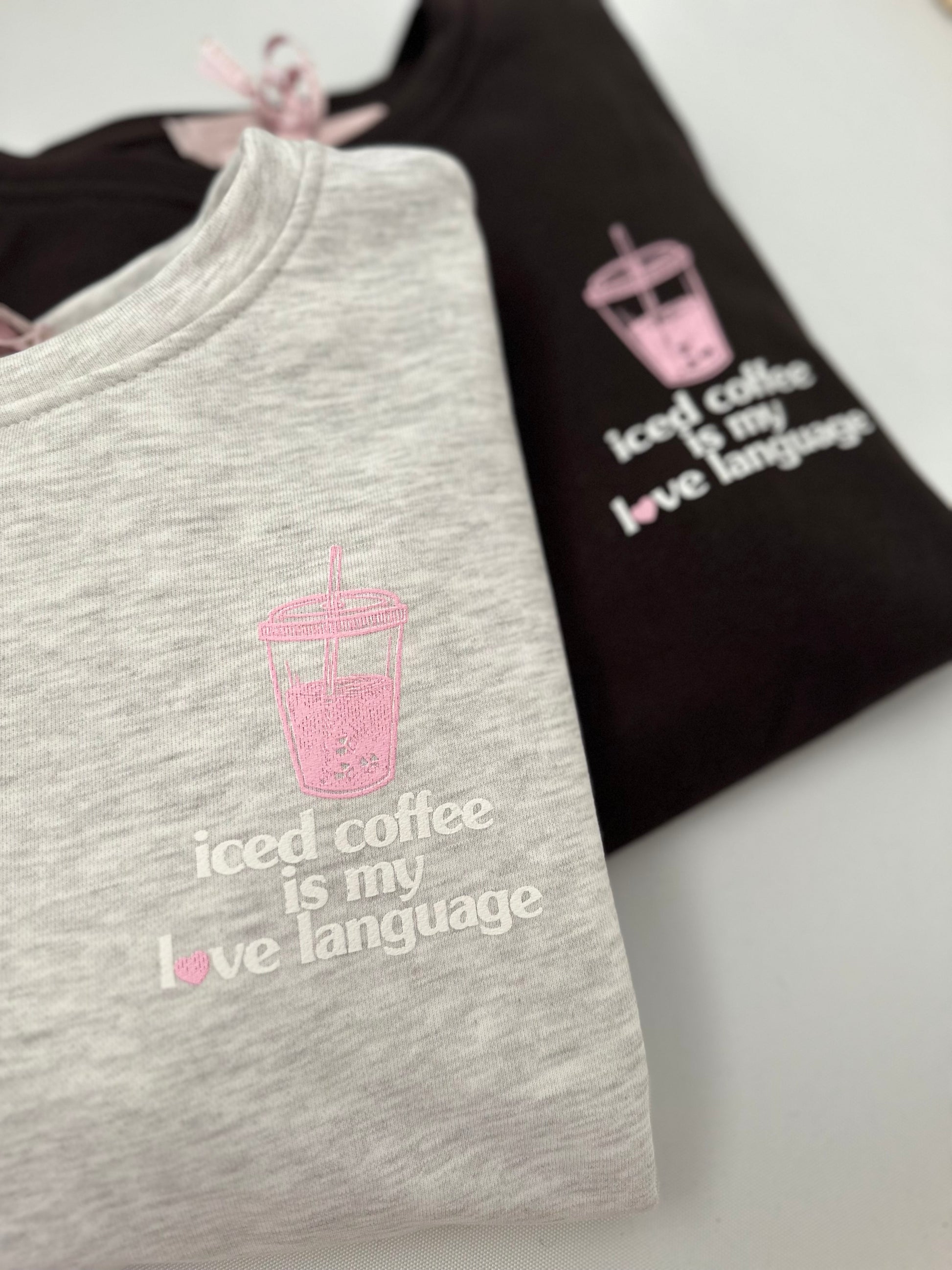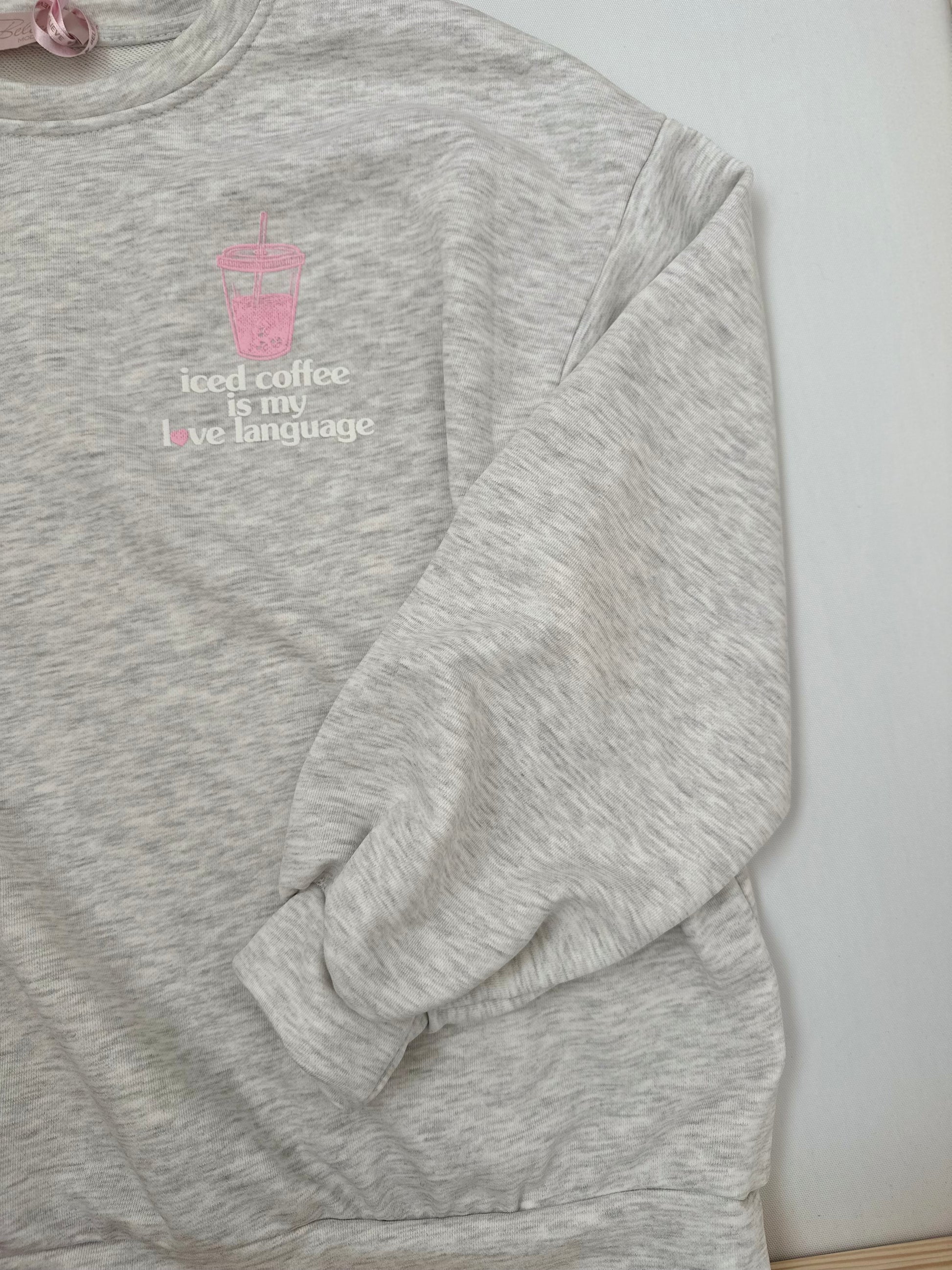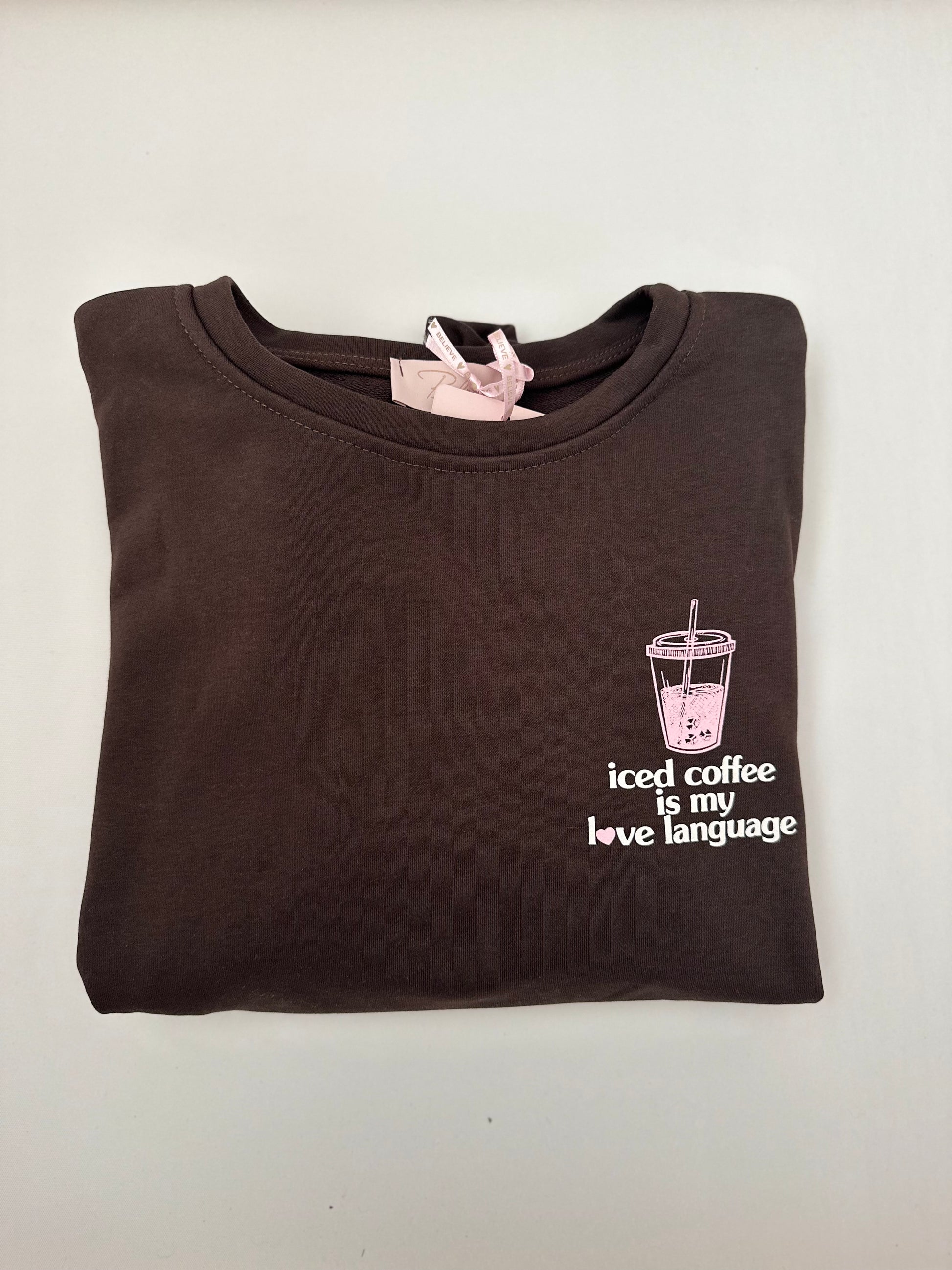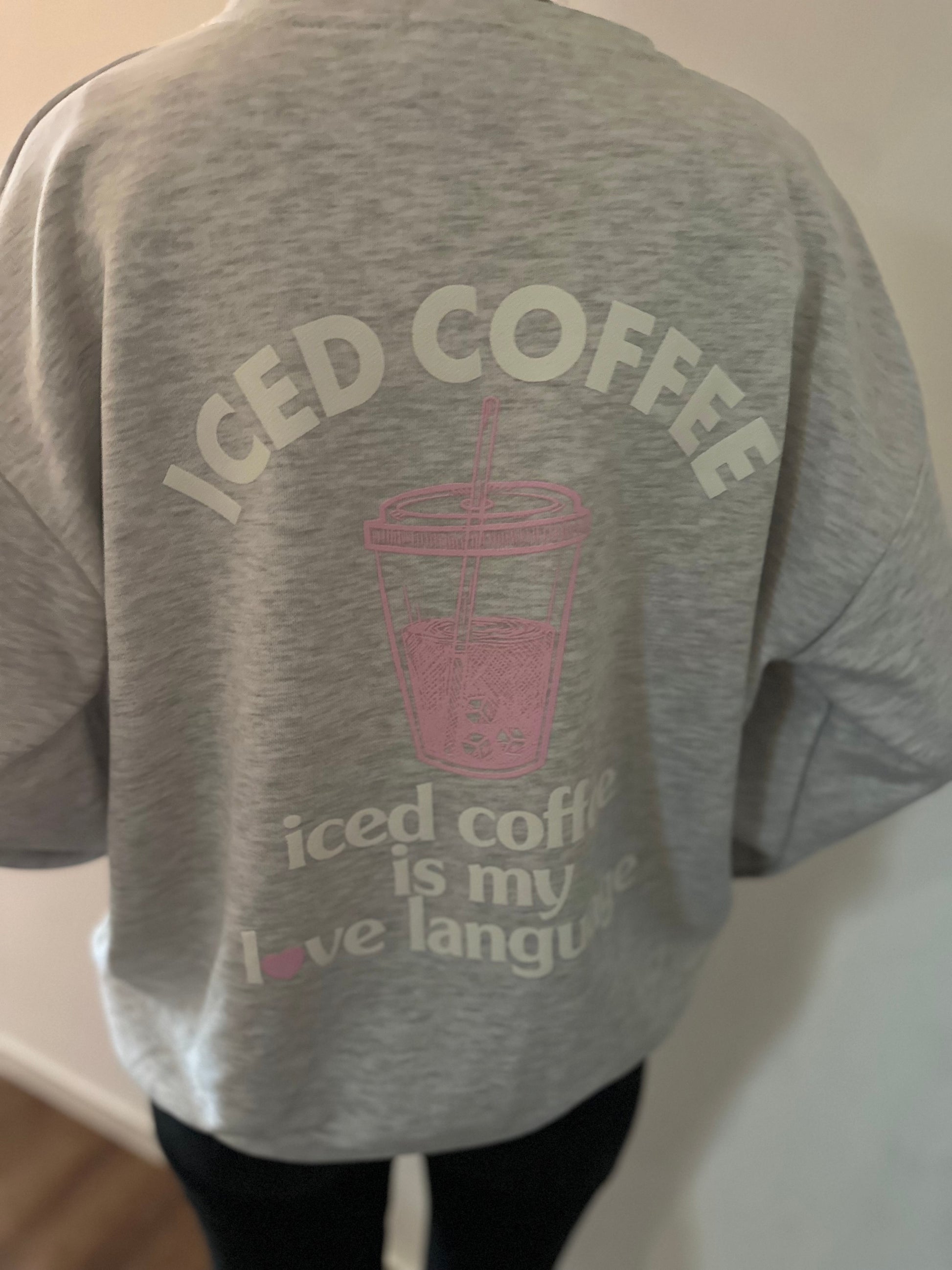Der gemütliche Oversize Sweater für alle Coffee-Lovers! Der trendige Rückenprint „Iced Coffee is my love language“ macht den Pulli zum perfekten Alltagsbegleiter.