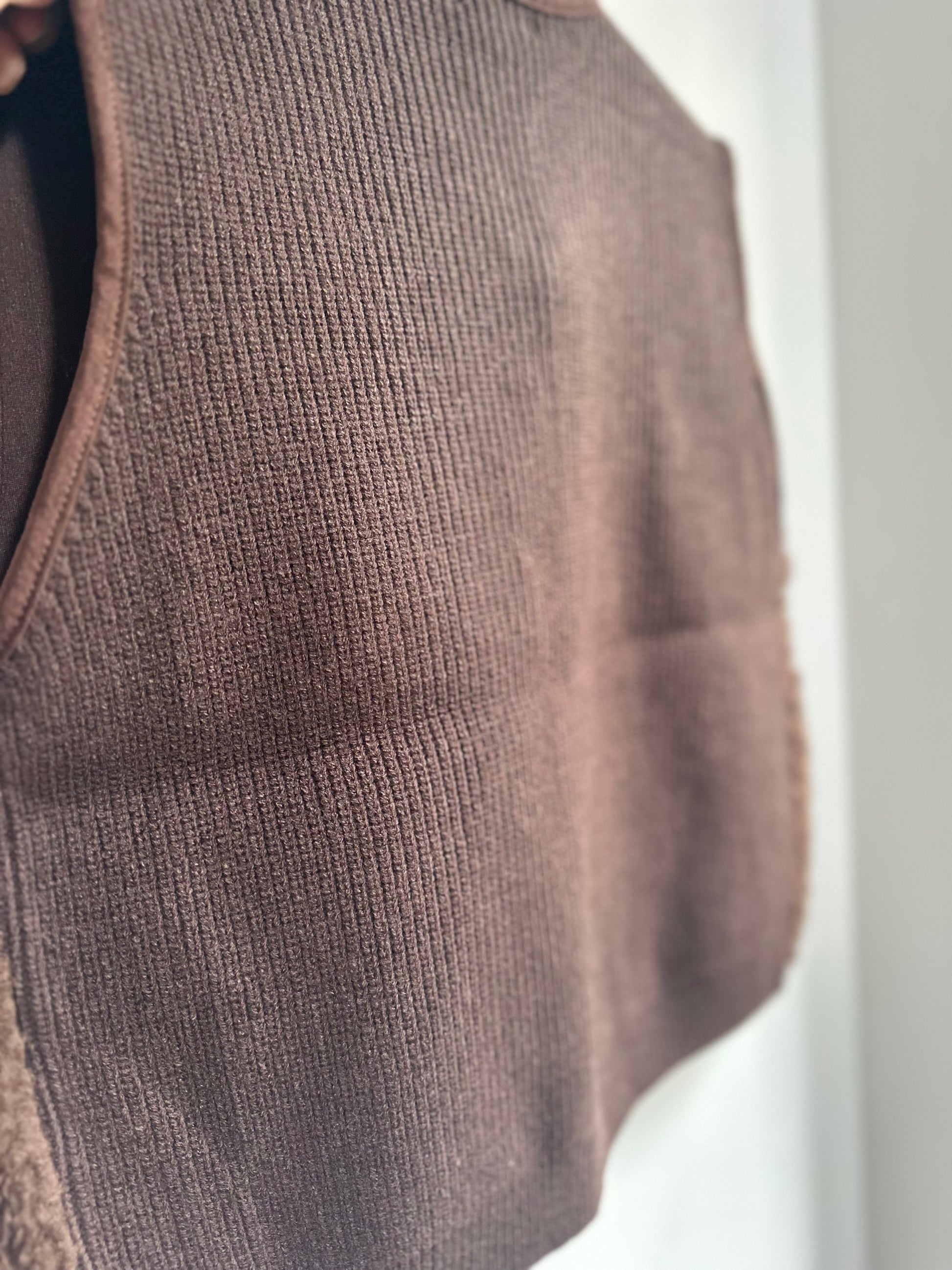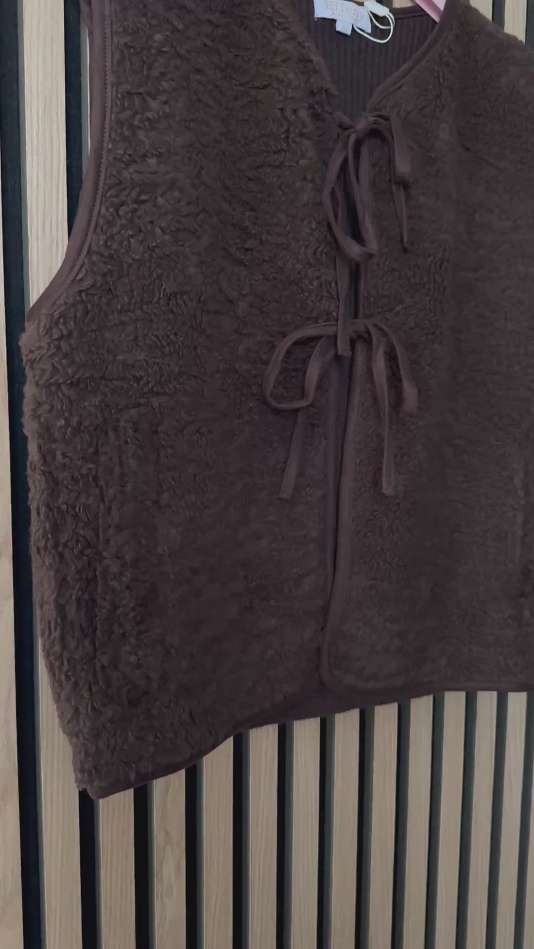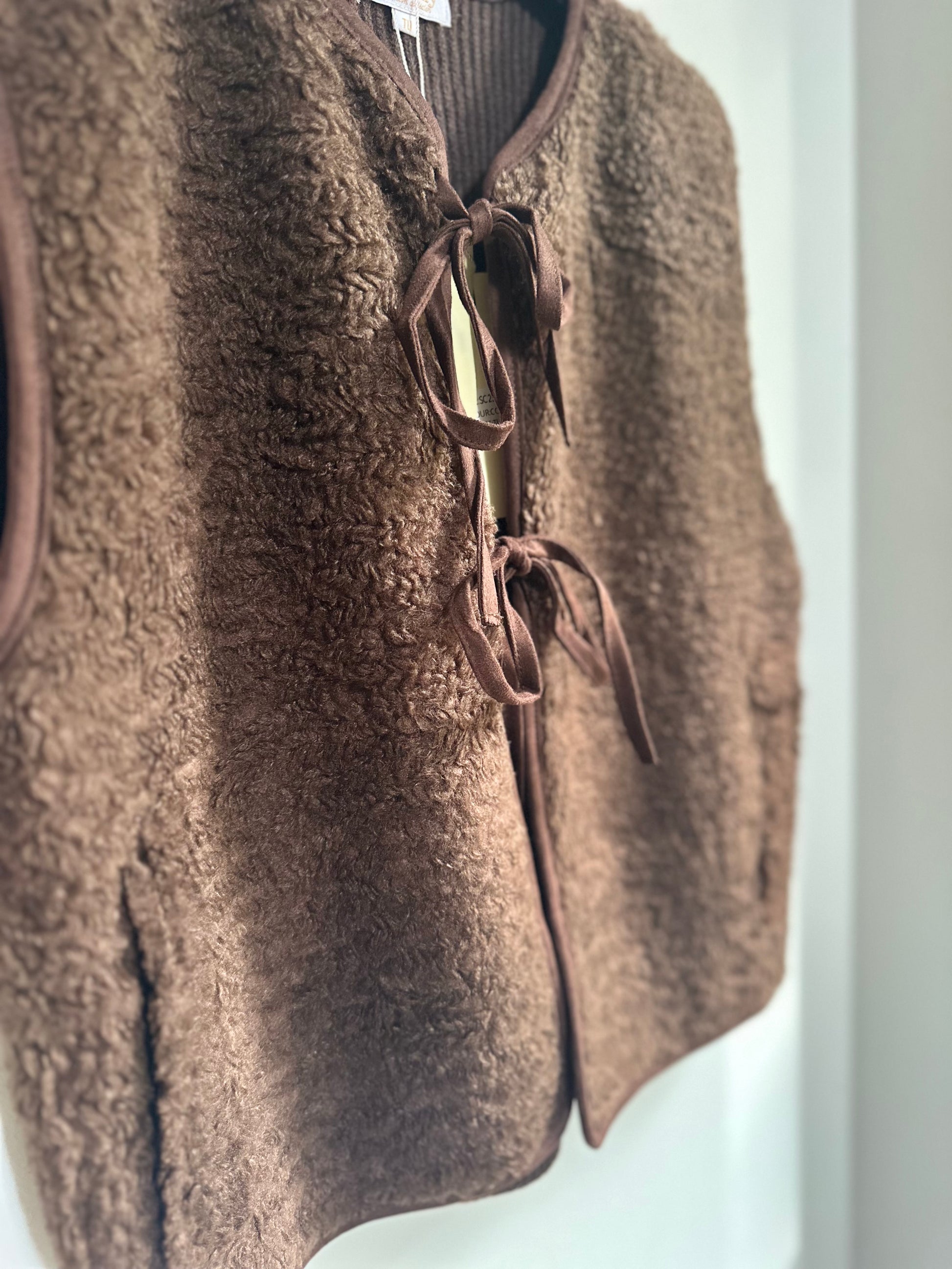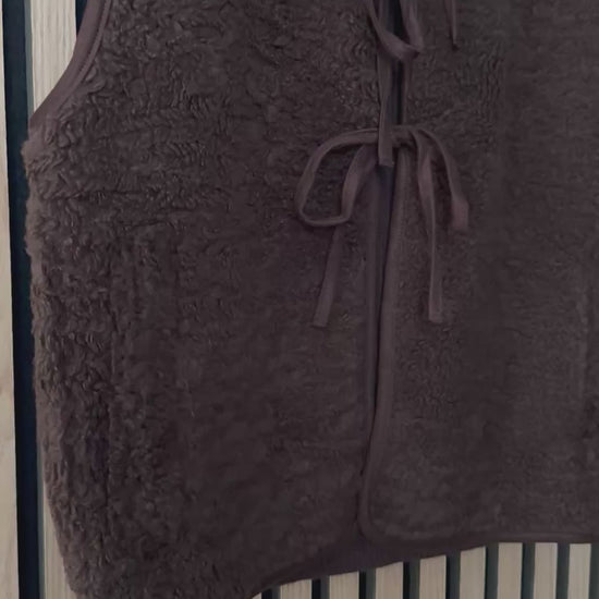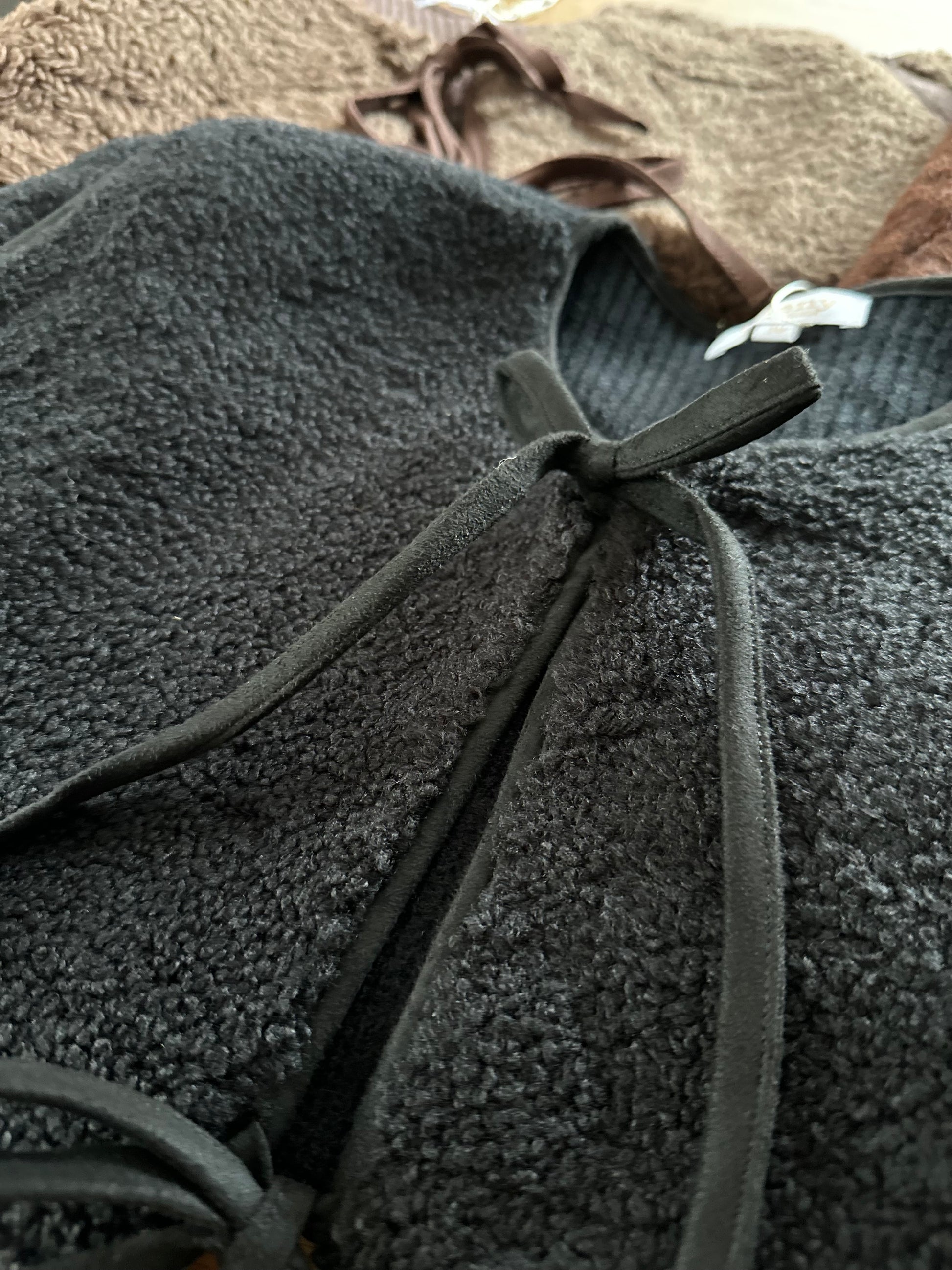 Kuschelig, soft und zeitlos – unsere Teddy-Weste ist der perfekte Begleiter für kühle Tage. Das flauschige Material sorgt für Wärme, die Bindebänder vorne verleihen einen femininen Touch. Hinten ist die Weste gestrickt. Ob über Pullover, Kleid oder Bluse – sie rundet jedes Outfit stilvoll ab.