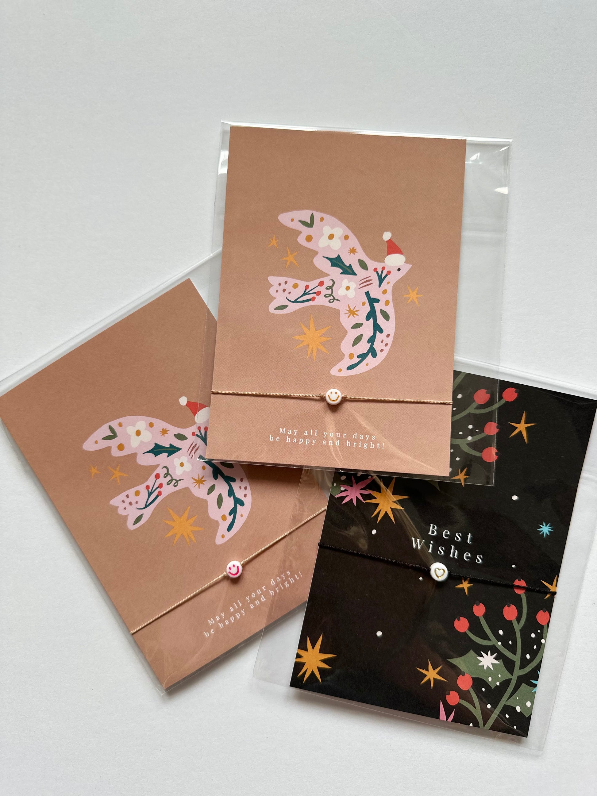 Verschenke Freude mit diesem charmanten Duo aus Weihnachtskarte und handgeknüpftem Smiley-Armband! Das bunte Makramee-Armband mit verstellbarem Schiebeverschluss passt jedem Handgelenk und bringt das ganze Jahr über gute Laune. Die liebevoll gestaltete Weihnachtskarte macht das Geschenk perfekt – ob als kleine Aufmerksamkeit zum Wichteln, zur Adventszeit oder einfach um jemandem ein Lächeln ins Gesicht zu zaubern.